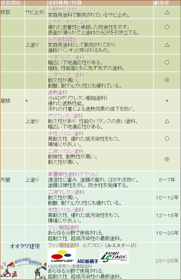 塗装箇所と適応する塗料の種類を簡単にまとめてあります。【こちらをクリック】